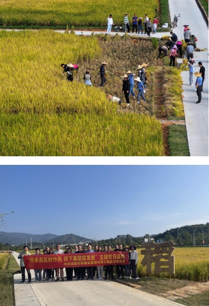 秋意漸寒,稻谷飄香為深入貫徹習近平總書記關于實施鄉村振興戰略和糧食安全的重要論述,以學促干,推動學習貫徹習近平新時代中國特色社會主義思想主題教育見行見效2023年117上午,市政集團黨支部組織全體黨員干部龍州濕地項目開展“傳承蘇區好作風 四下基層促發展”主題黨日活動,全面助力稻谷收割工作