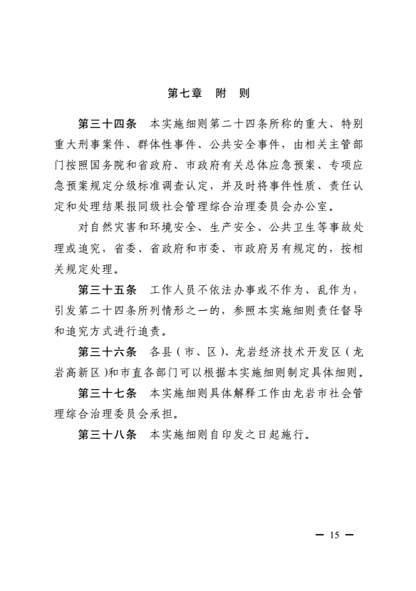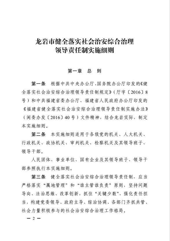 龍巖市健全落實社會治安綜合治理領導責任制實施細則(巖委辦發【2017】11號)