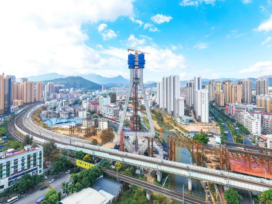 龍巖大橋主塔實現順利封頂
