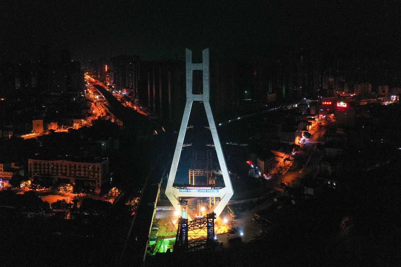 4月10日凌晨,龍巖大橋百米高萬噸主塔完成逆時針69度旋轉(zhuǎn),歷時1小時20分鐘左右安全到達指定位置。