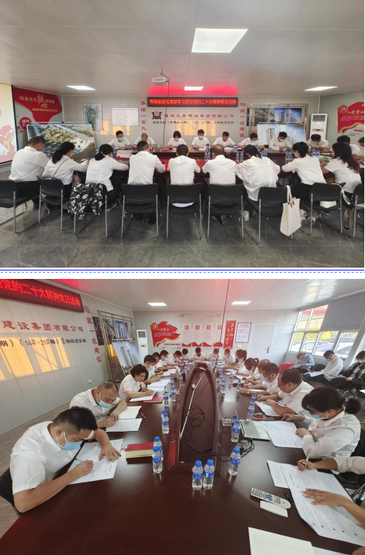 10月28日上午,市政集團黨支部在龍欣安置小區(二期)項目部召開支部黨員大會,傳達學習黨的二十大精神。市政集團黨支部書記、董事長徐旺興主持會議,市政集團和龍欣安置小區(二期)項目部全體黨員、入黨積極分子參加會議。